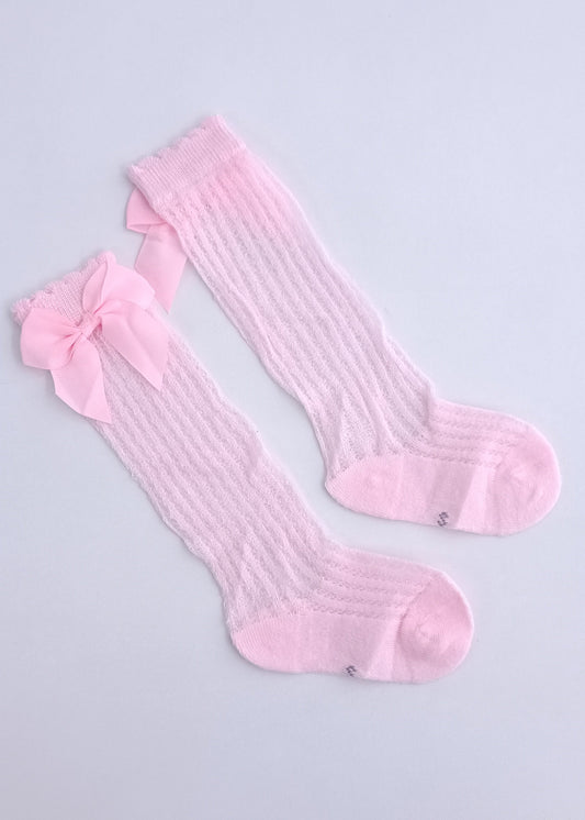 Media larga española malla con moñitos bebita