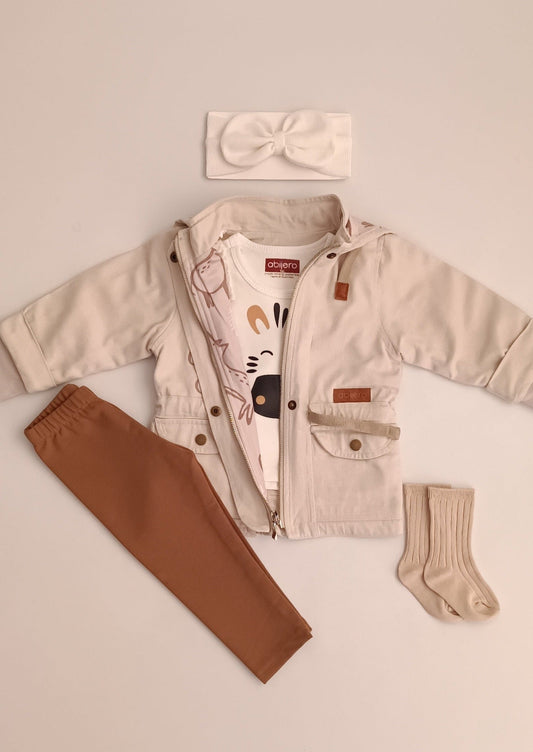 Conjunto Niña chaqueta explorador, cebra y leggins