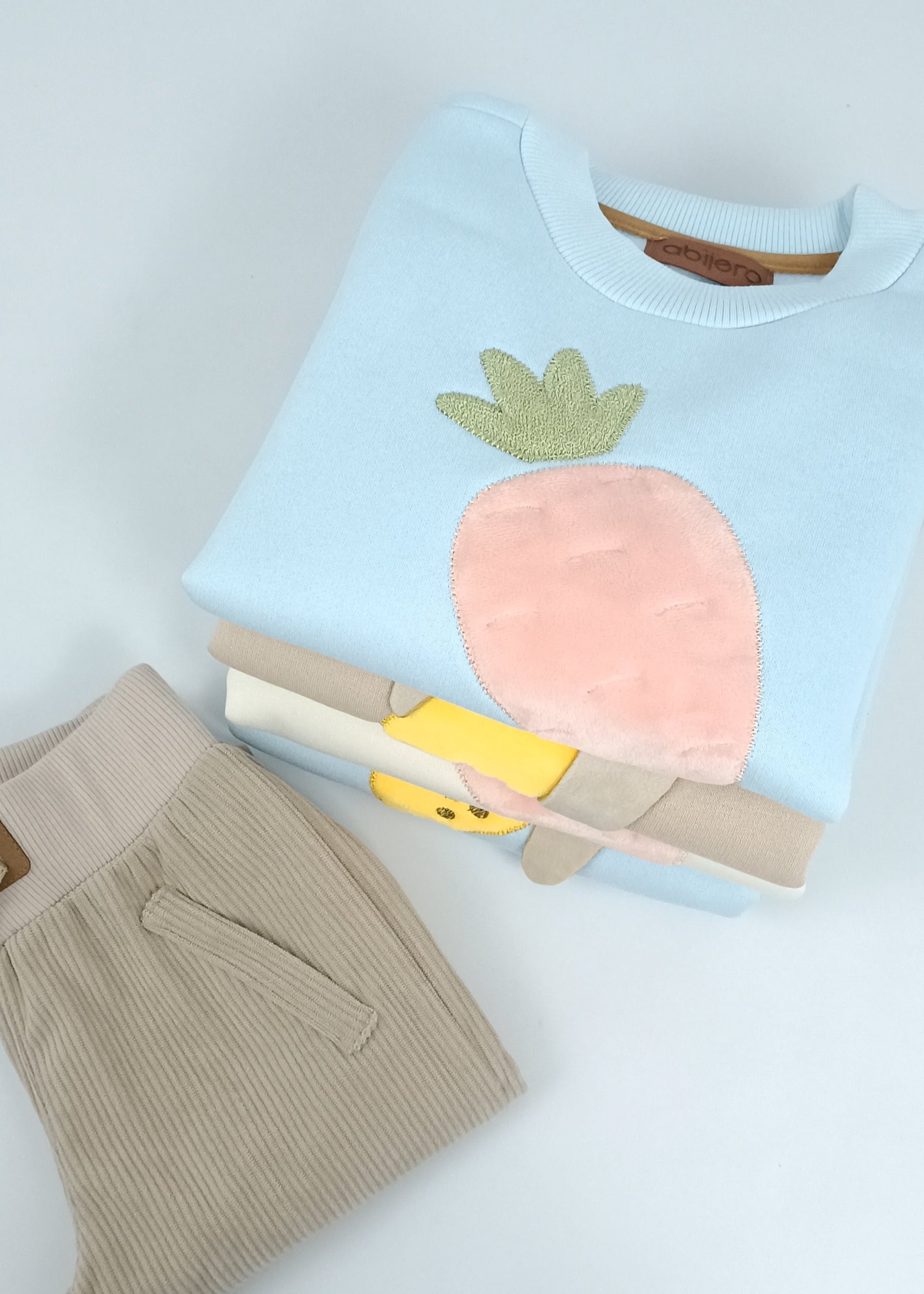 Un abracito bordado con las frutas favoritas de nuestros peques, hecho en algodón suave, con detalles en relieve y pulpa aterciopelada que invita a tocar. Una robusta pero delicada prenda, que celebra la dulzura de las frutas mas divertidas y favoritas de nuestros pequeños. El diseño versátil del jogger es un gran complemento para hacer un gran conjunto que los hará ver muy lindos y sentirse cómodos en el cole, el parque, o en la fiesta de cumple.