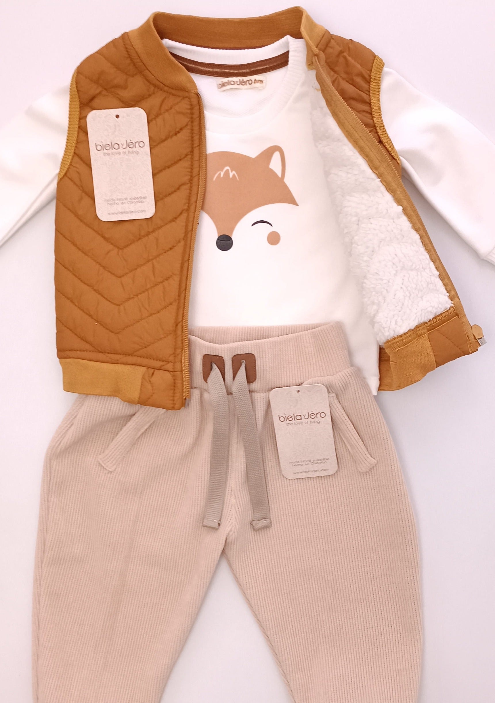 Regalo Listo! Conjunto Bebito Chaleco Jero Mostaza tres prendas