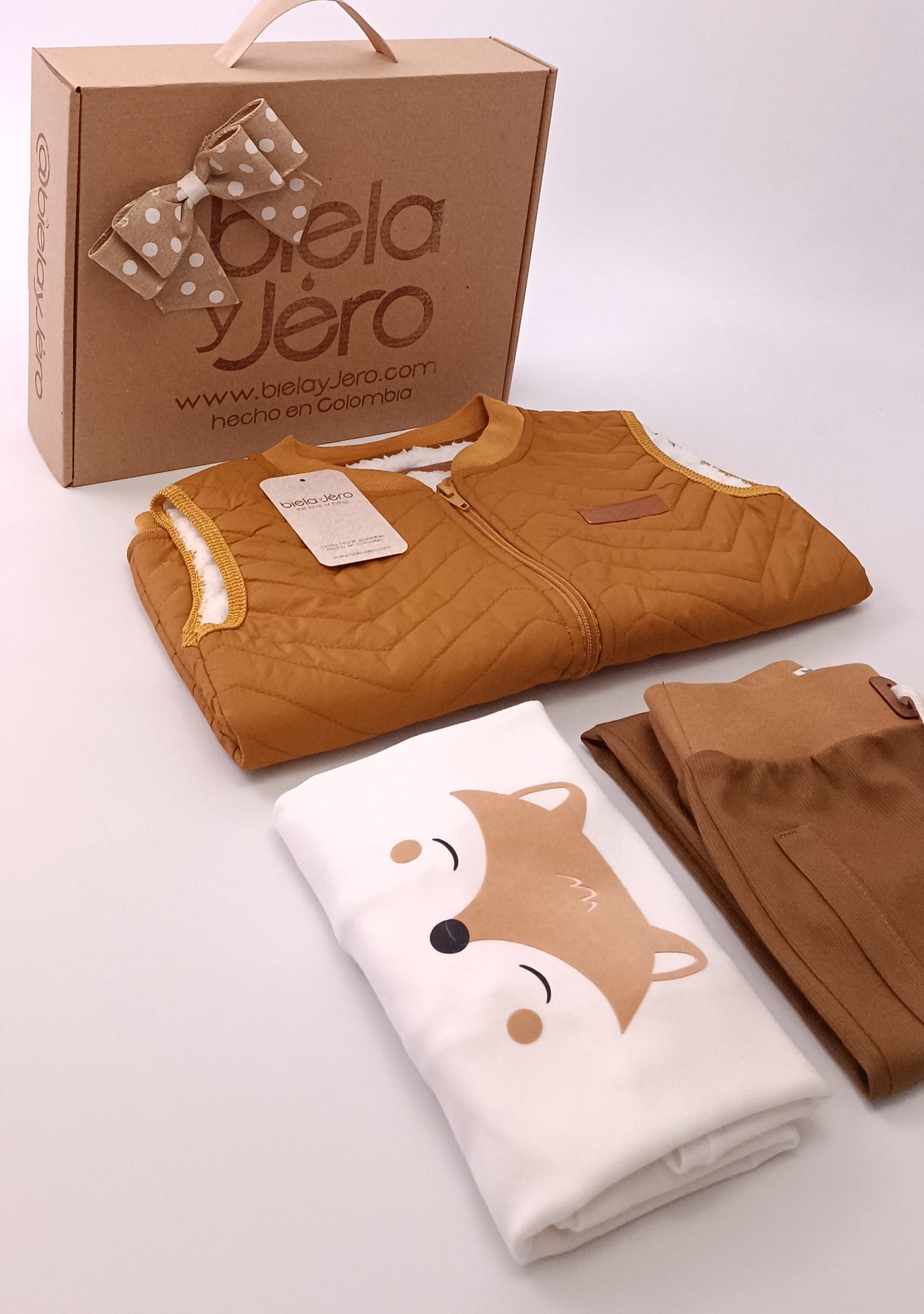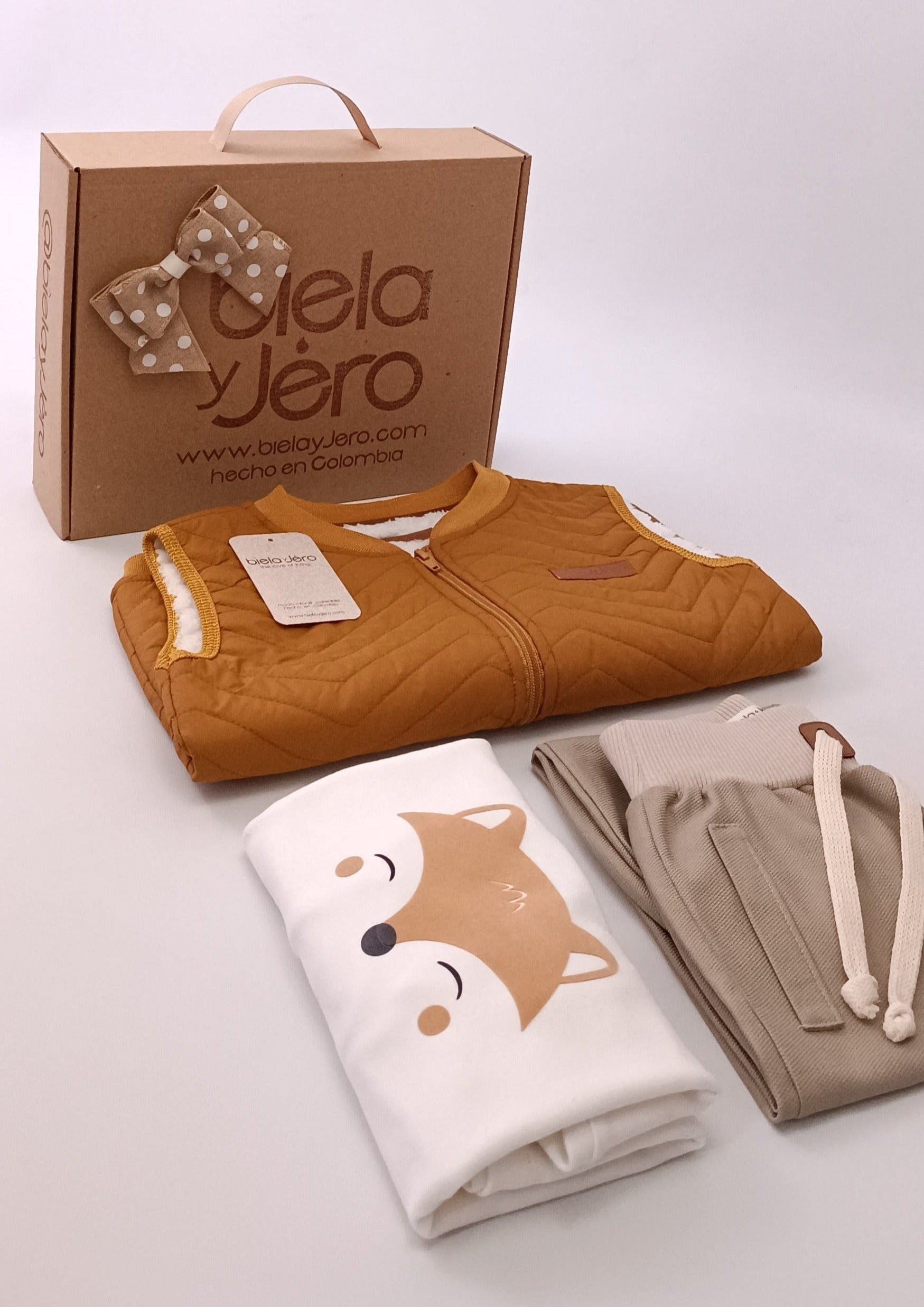 Regalo Listo! Conjunto Chaleco mostaza Zorrito para niño